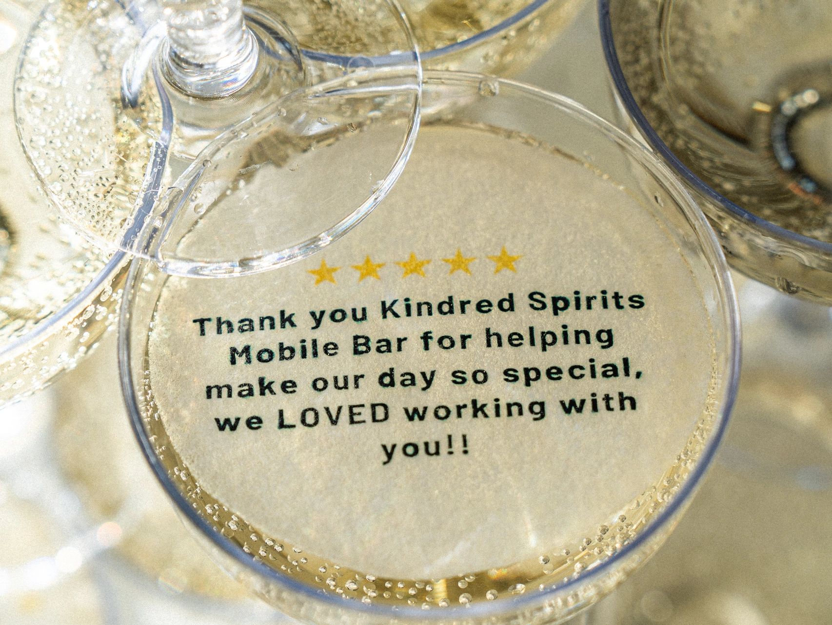 High quality disposable beer cups, wine/cocktail glasses, champagne flutes, cocktail napkins, straws, garnish picks, etc. (if applicable)